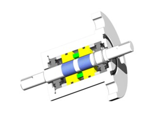磁気回路は磁石とポールピースと回転軸で構成され、この磁気回路によって磁性流体が回転軸の周りにリング状に固定されます。このリング状の磁性流体が、軸が高速回転しても摩擦を生じさせないシール材として機能します。1段の磁性流体で耐えられる圧力差は低いため、高い差圧が必要な場合は複数段のシール構造にすることで対応可能です。